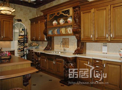 使用实木制作橱柜门板,风格多为古典型,通常价位较高。其门框为实木,以樱桃木色、胡桃木色、橡木色为主。门芯为中密度板贴实 木皮,制作中一般在实木表面做凹凸造型,外喷漆,从而保持了原木色且造型优美。这样可以保证实木的特殊视觉效果,边框与芯板组合又可以保证门板强度。